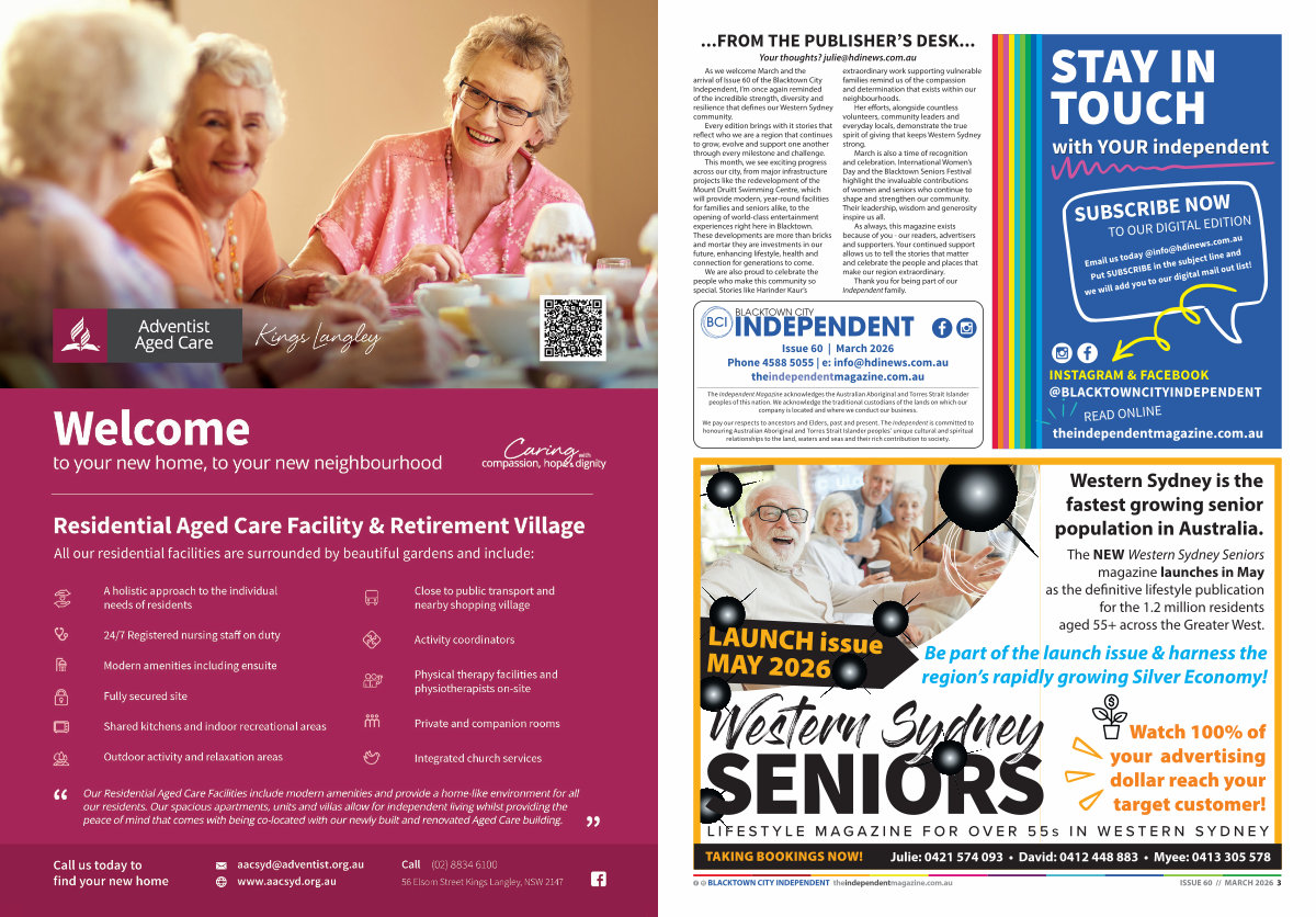 BLACKTOWN CITY INDEPENDENT theindependentmagazine. com. au ISSUE 60 // MARCH 2026 3