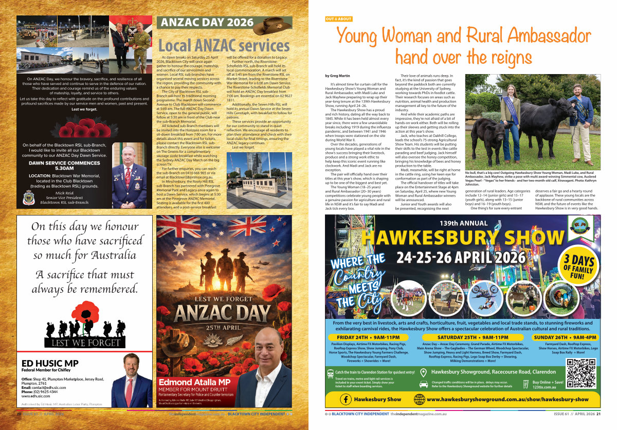 20 ISSUE 61 // APRIL 2026 theindependentmagazine. com. au BLACKTOWN CITY INDEPENDENT