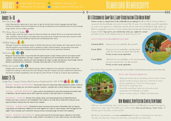 WEDNESDAY-- GO BUGGY: Discover the crawling, flying, and hopping bugs that call Blandford home. Campers will have a chance to use investigation tools to get an up close look at these little creatures as we explore different habitats from the forest to the meadow.