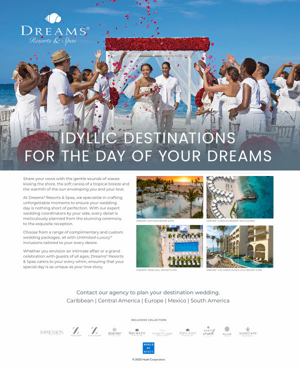 Whether you you envision an an intimate affair or or a a grand celebration with with guests of of all all ages,, Dreams ® ® Resorts & Spas & Spas caters caters to to your your every whim,, ensuring that your special special day day is as is as unique as as your your love love story..