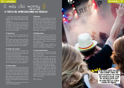antigas dele!”. Contudo, este tipo de pessoas não é propriamente um geek da música. Entre um concerto e ir para a cama com