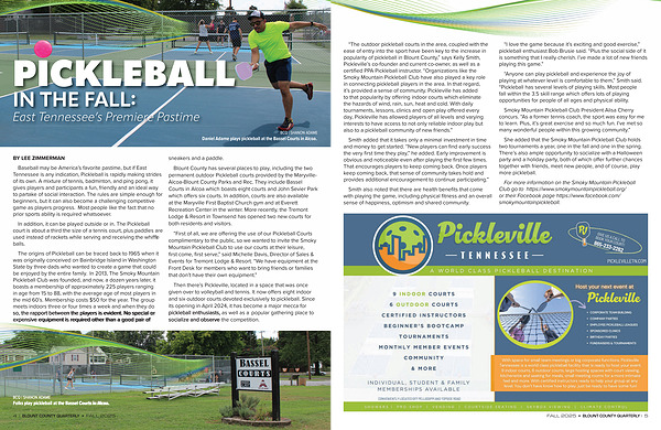 “ The outdoor pickleball courts in the area, coupled with the ease of entry into the sport have been key to the increase in popularity of pickleball in Blount County,” says Kelly Smith, Pickleville’ s co-founder and current co-owner, as well as a certified PPA Pickleball instructor.“ Organizations like the Smoky Mountain Pickleball Club have also played a key role in connecting pickleball players in the area. In that regard, it’ s provided a sense of community. Pickleville has added to that popularity by offering indoor courts which eliminate the hazards of wind, rain, sun, heat and cold. With daily tournaments, lessons, clinics and open play offered every day, Pickleville has allowed players of all levels and varying interests to have access to not only reliable indoor play but also to a pickleball community of new friends.”