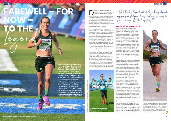 Is there anything not to love about Trail BNC Permanent Number 1, Landie Greyling? It would appear not. Sheβ s not only laudable, but levelheaded, lively and just plain lovely. She took time out from her busy schedule to talk putting away her pro running shoes( for now), making the most of this stage of motherhood, and refocusing on her career as a chartered accountant. β BY LINDY-JOY DENNIS AND SEAN FALCONER