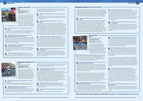 Do you approach the TTOM any differently now than when you started running the event? Yes, because the older I get, the more aware I am of the need for balanced preparation for this race, and that completing 56 kilometres in seven hours requires more than just running in training. Now I also appreciate the value of rest, and getting enough sleep, so as to recover from the training. I have also included strength training to make sure that my whole body is ready, and that I am physically, mentally and spiritually up to scratch. I also mind my nutrition, hydration and supplements, and also go for a massage at least three or four times a month, depending on my finances.