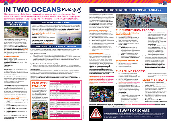 Here are some dates for both participants and supporters to pencil into their diaries as we build up to the 2026 Totalsports Two Oceans Marathon. More dates and times will be announced as they are finalised, so keep checking this timeline in future editions of this digimag.