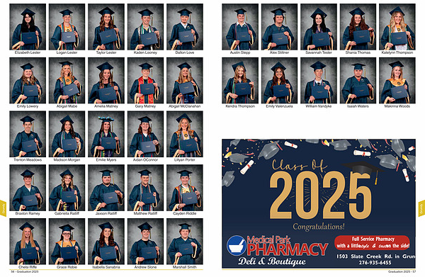 56- Graduation 2025 Grundy Lillyan Porter Aidan OConnor Emilie Myers Madison Morgan Trenton Meadows Cayden Riddle Matthew Ratliff Jaxson Ratliff Gabriella Ratliff Braxton Ramey Marshall Smith Andrew Slone Isabella Sanabria Grace Robie Chelsi Riffe Abigail McClanahan Gary Matney Amelia Matney Abigail Mabe Emily Lowery Dalton Love Kaden Looney Taylor Lester Logan Lester Elizabeth Lester