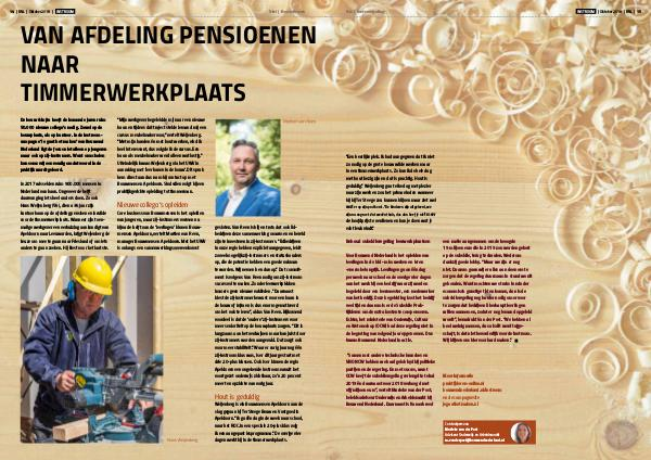 Hans Weijenberg (56), die na 36 jaar zijn Nieuwe collega’s opleiden kantoorbaan op de afdeling pensioenen inruilde Core business van Bouwmensen is het opleiden voor de timmerwerkplaats. Wanneer zijn toen- van jongeren, maar zij-instromers vormen nu malige werkgever een verhuizing aankondigt van bijna de helft van de ‘leerlingen’ binnen Bouw- gesloten. Van Reen is blij en trots dat ook lid
