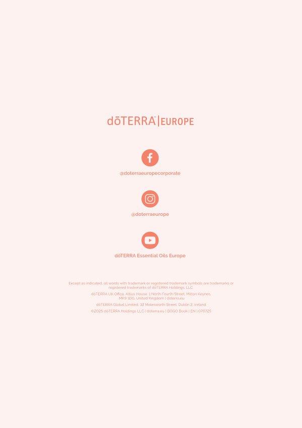 dōTERRA Global Limited, 32 Molesworth Street, Dublin 2, Ireland © 2025 dōTERRA Holdings LLC | doterra. eu | BOGO Book | EN | 070725