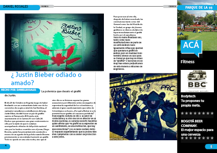 El día 29 de Octubre en Bogotá, luego de haber finalizado con un contundente éxito uno de los conciertos de su gira a nivel de Sur América, el cantautor canadiense y estrella joven del pop, Justin Biber, decidió hacer un par de grafitis camino al Aeropuerto El Dorado, más exactamente en la Carrera 30 con Calle 26. Hechos que generaron una gran controversia no sólo por la razón de que lo estaban acompañando oficiales de la4 policía nacional sino por los hechos ocurridos con el joven, Diego Becerra, quien fue presuntamente asesinado a manos de un agente de la policía cuando Becerra precisamente se encontraba haciendo un grafiti.