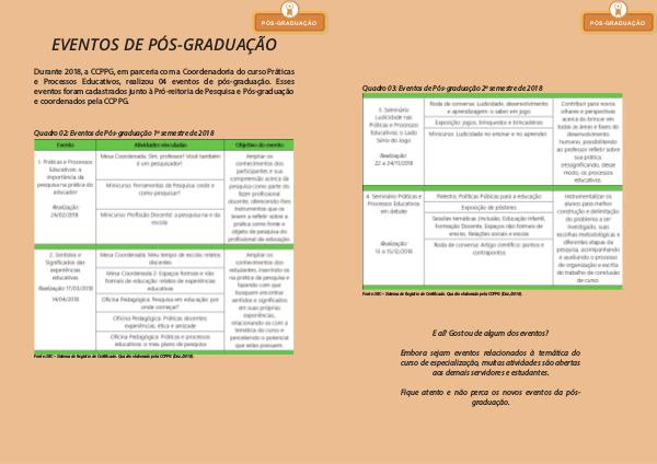 e Processos Educativos, realizou 04 eventos de pós-graduação. Esses