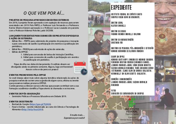 executados em 2019. Pela FAPES, o Professor Luiz Fernando e a Professora