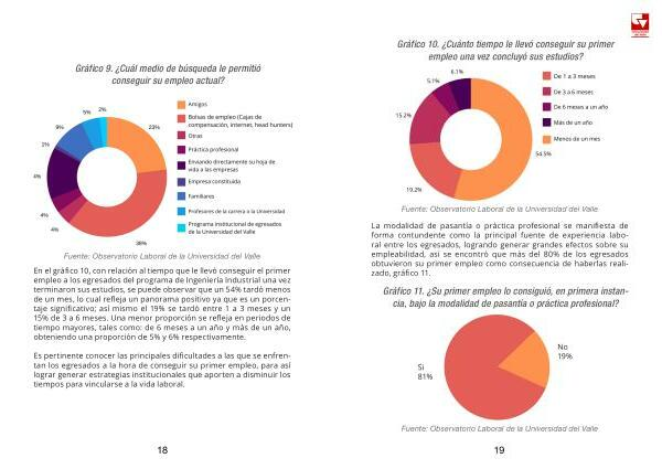 La modalidad de pasantía o práctica profesional se manifiesta de forma contundente como la principal fuente de experiencia laboral entre los egresados , logrando generar grandes efectos sobre su empleabilidad , así se encontró que más del 80 % de los egresados obtuvieron su primer empleo como consecuencia de haberlas realizado , gráfico 11 .