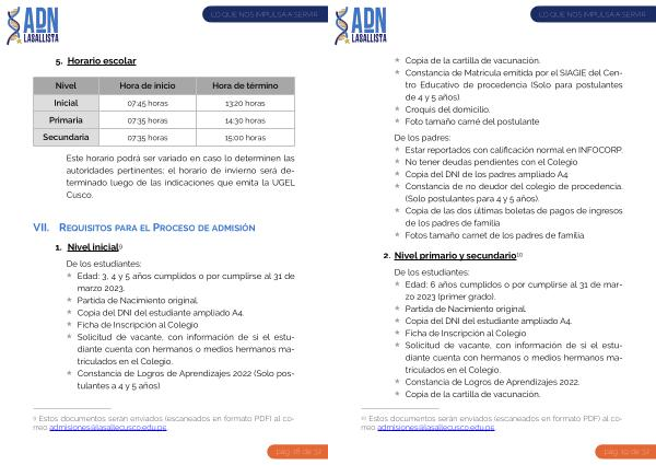 ★ Constancia de no deudor del colegio de procedencia . ( Solo postulantes para 4 y 5 años ).