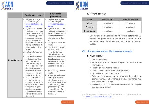 Solicitud de vacante , con información de si el estudiante cuenta con hermanos o medios hermanos matriculados en el Colegio . Constancia de Logros de Aprendizajes 2022 ( Solo postulantes a 4 y 5 años ).