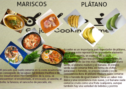 Ecuador es un importante país exportador de plátano, por lo que este representa un importante elemento en la gastronomía, en especial en la costa ecuatoriana. Existen tres principales variedades de plátano, siendo las tres más importantes: el plátano verde, el plátano maduro y el banano. El plátano verde suele comerse frito, en forma de chifles, patacones o hervido, se prepara salado y es de consistencia dura. El plátano maduro suele comerse frito o hervido de igual manera, tiene un sabor más dulce y una consistencia más suave, y el banano suele comerse crudo como una fruta cualquiera, aunque también hay una variedad de bebidas y postres preparados a base del mismo.