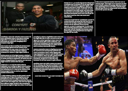 Questions hover over which Gamboa we expect to see on Saturday. Will ring rust be evident? Or will the knockout artist take out the frustrations of the past year and three months on Farenas and dispatch his relatively unheralded opponent in brutal and impressive fashion?