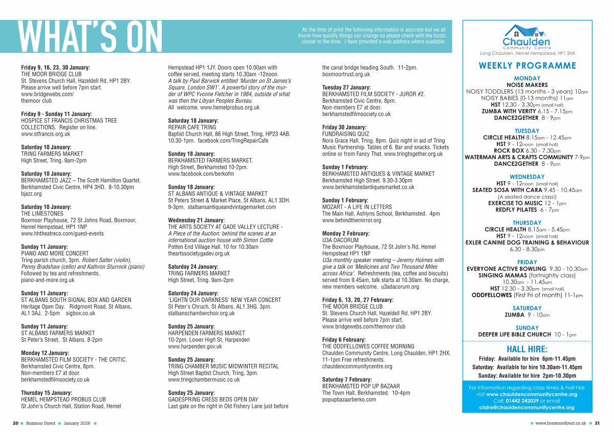 Friday 6 February: THE ODDFELLOWES COFFEE MORNING Chaulden Community Centre, Long Chaulden, HP1 2HX. 11-1pm Free refreshments. chauldencommunitycentre. org