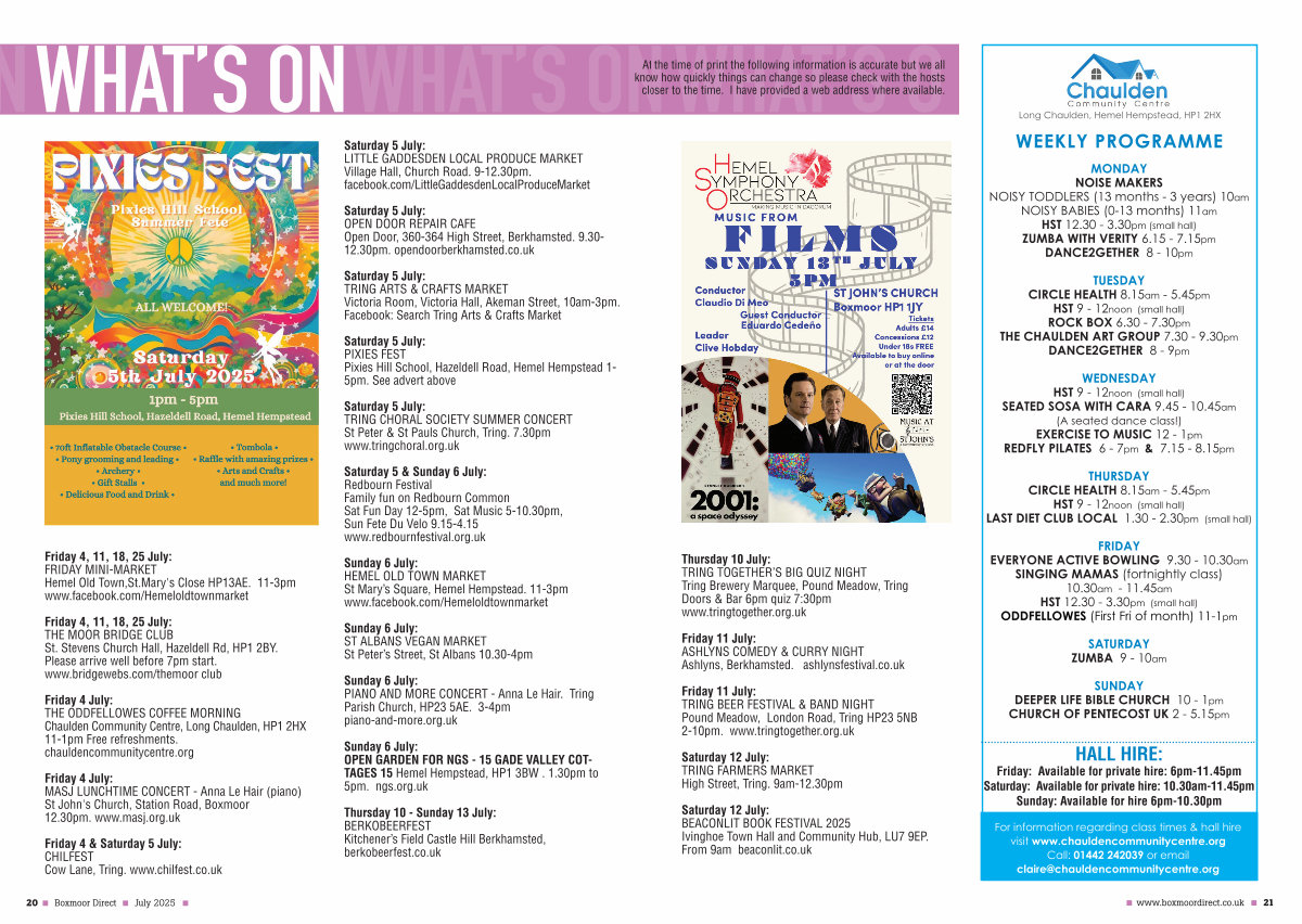 Saturday 5 July: LITTLE GADDESDEN LOCAL PRODUCE MARKET Village Hall, Church Road. 9-12.30pm. facebook. com / LittleGaddesdenLocalProduceMarket