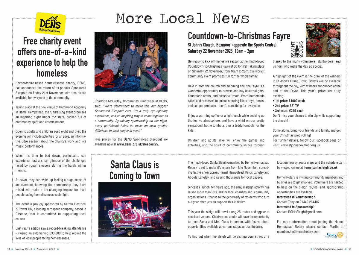 The much-loved Santa Sleigh organised by Hemel Hempstead Rotary is set to make it’ s return from late November, spreading festive cheer across Hemel Hempstead, Kings Langley and Abbots Langley, and raising thousands for local causes.