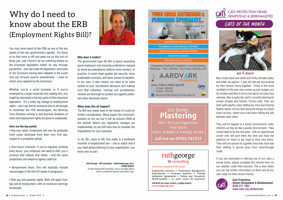 Why does it matter? The government says the Bill is about rewarding good employers and ensuring protections enjoyed by some are extended to millions more workers. In practice, it could mean greater job security, more predictable contracts, and fairer access to benefits. In my view, it also means you need to be extra certain of your recruitment decisions and making sure that induction, training and probationary reviews are thorough to protect you against potential unfair dismissal claims.