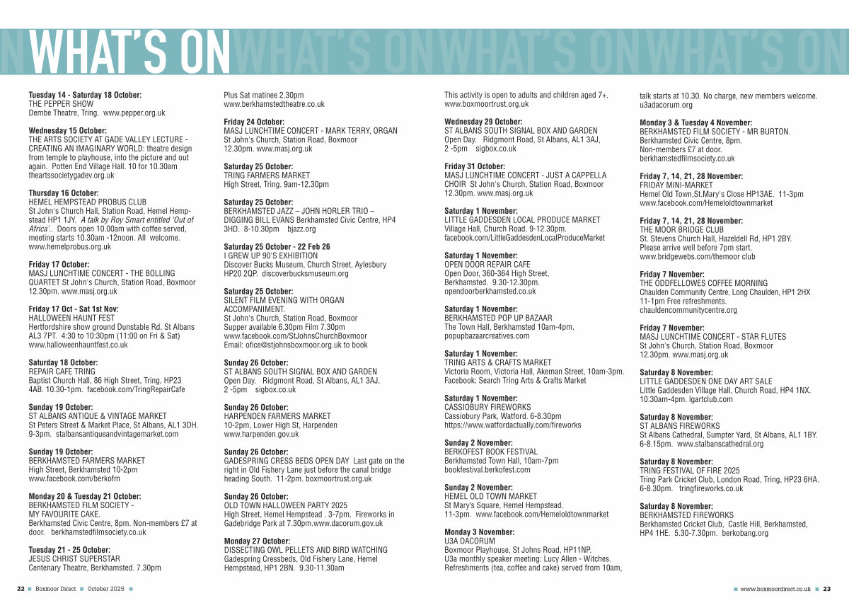 Saturday 1 November: LITTLE GADDESDEN LOCAL PRODUCE MARKET Village Hall, Church Road. 9-12.30pm. facebook. com / LittleGaddesdenLocalProduceMarket