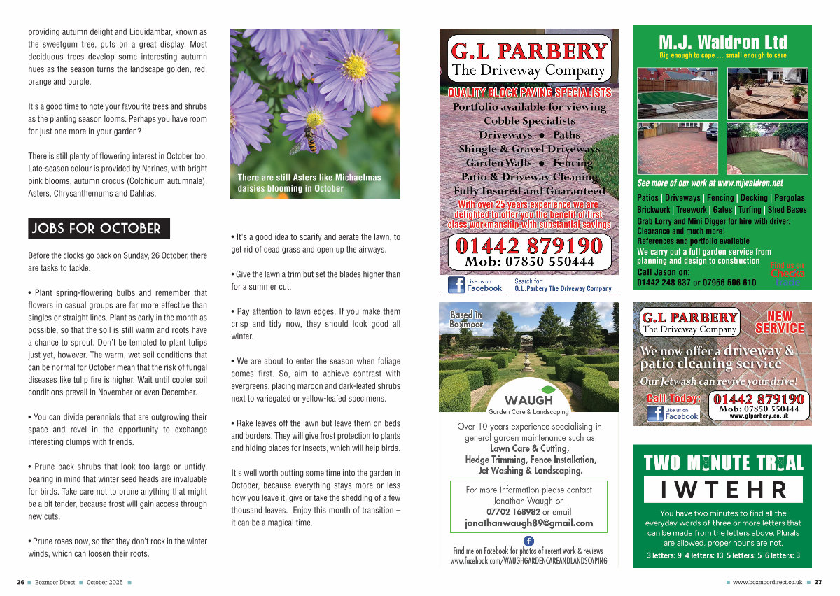 Before the clocks go back on Sunday, 26 October, there are tasks to tackle.