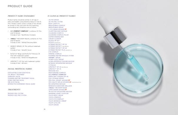 SERUM HYDRA-COOL SERUM ® HYDRA-INTENSIVE COOLING MASQUE INTENSIVE RESURFACING MASQUE LIP POLISH LIPROTECT ® SPF 30 ( AUSTRALIA ) LIPROTECT ® SPF 35 MASSAGE SILK MOISTURIZING COMPLEX NECKPERFECT COMPLEX ® PERFECTINT ® POWDER SPF 40 POLY-VITAMIN SERUM ® PRO-HEAL SERUM ® ADVANCE
