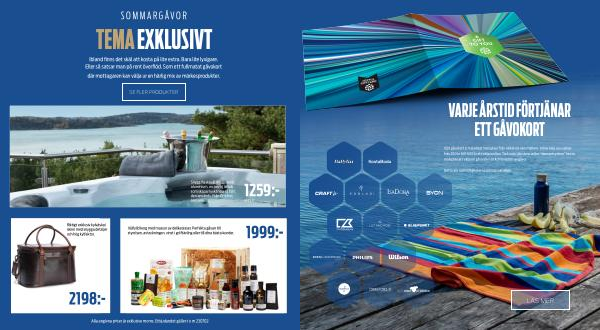 Vårt gåvokort är fulladdat med gåvor från välkända varumärken . Vi har hela sex valörer från 200 kr till 1 600 kr att välja mellan . Tack vare tjänstens unika “ diamantsystem ” har du möjlighet att välja en gåva eller en kombination av gåvor .
