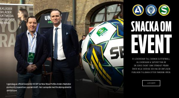 I egenskap av officiell leverantör till SEF tar New Wave Profiles Anders Nejdsäter position vid Superettans upptaktsträff - här i samspråk med försäljningsdirektör Jan Karlsson .