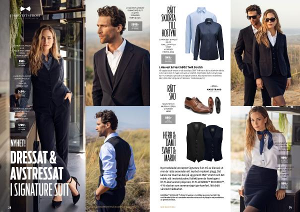 Nya tredelade konceptet Signature Suit må se klassisk ut men är i alla avseenden ett mycket modernt plagg. Det känns när man har den på sig genom 360 ° stretch och det märks väl i materialvalen: Kollektionen är framtagen i 63 % återvunnen polyester, 33 % LENZING™ ECOVERO™, 4 % elastan som sammantaget ger komfort, lättskött vård och hållbarhet.