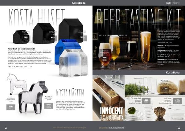 Beer tasting kit 4-pack Orrefors för alla ölälskare där Erika Lagerbielke har skapat en serie glas där vart och ett är formgivet för att samspela med öl som lager, pilsner och IPA. Det fjärde glaset är ett ölprovningsglas som passar utmärkt för fylliga ölsorter såsom smakrik belgisk trappistöl, ale, stout och liknande.