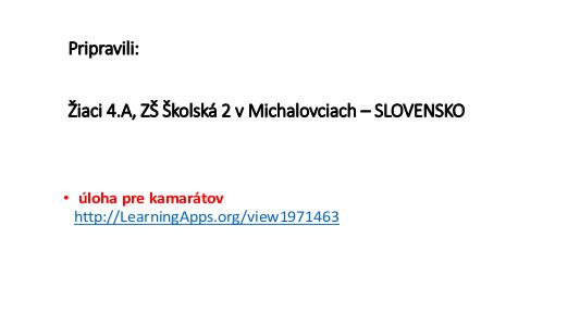 Pripravili: Žiaci 4.A, ZŠ Školská 2 v Michalovciach – SLOVENSKO • úloha pre kamarátov http://LearningApps.org/view1971463