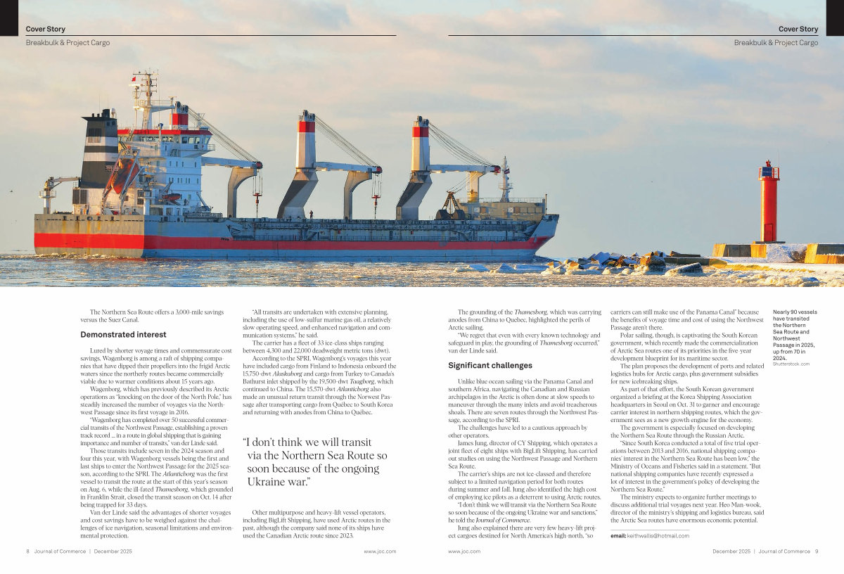 Other multipurpose and heavy-lift vessel operators, including BigLift Shipping, have used Arctic routes in the past, although the company said none of its ships have used the Canadian Arctic route since 2023.