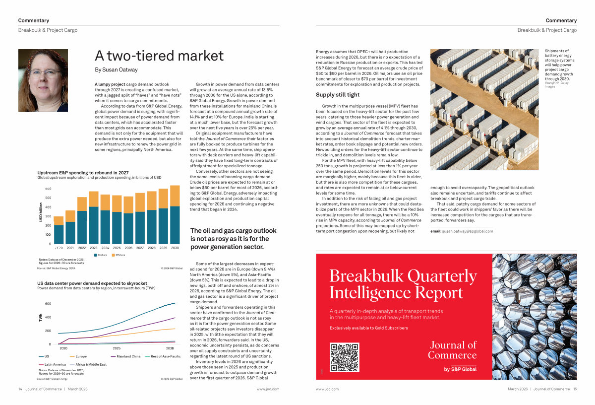 enough to avoid overcapacity. The geopolitical outlook also remains uncertain, and tariffs continue to affect breakbulk and project cargo trade.