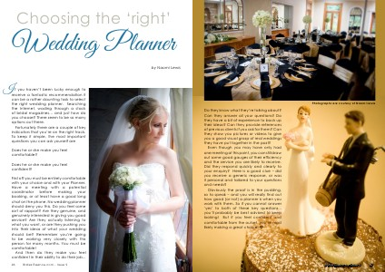 f you haven’t been lucky enough to receive a fantastic recommendation it can be a rather daunting task to select the right wedding planner. Searching the Internet, wading through a stack of bridal magazines… and just how do you choose? There seem to be so many options out there. Fortunately there are a couple of key indicators that you’re on the right track. To keep it simple, the most important questions you can ask yourself are Does he or she make you feel comfortable? Does he or she make you feel confident? First off you must be entirely comfortable with your choice and with your Planner. Have a meeting with a potential coordinator before making your booking, or at least have a good long chat on the phone. No wedding planner should deny you this. Do you feel some sort of rapport? Are they genuine, and genuinely interested in giving you good service? Are they actually listening to what you want, or are they pushing you into their ideas of what your wedding should be? Remember you’re going to be working very closely with this person for many months. You must be comfortable! And then do they make you feel confident in their ability to do their job...
