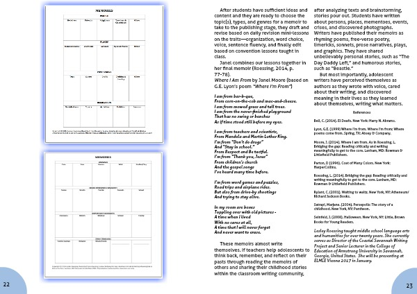 Moore, J. (2014). Where I am from. As in Roessing, L. Bridging the gap: Reading critically and writing meaningfully to get to the core. Lanham, MD: Rowman &