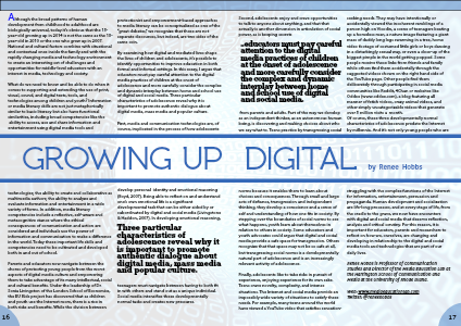By examining how digital and mediated lives shape the lives of children and adolescents, it’s possible to identify opportunities to improve education in both formal and informal settings. In this essay, I argue that educators must pay careful attention to the digital media practices of children at the onset of adolescence and more carefully consider the complex and dynamic interplay between home and school use of digital and social media. Three particular characteristics of adolescence reveal why it is important to promote authentic dialogue about digital media, mass media and popular culture.
