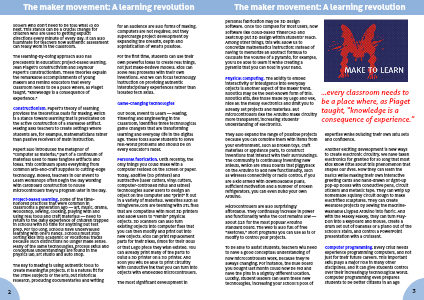 For the first time, students can use their own powerful ideas to create real things, not just make-believe models. Kids can solve real problems with their own inventions. And we can focus technology instruction on providing authentic interdisciplinary experiences rather than isolated tech skills.