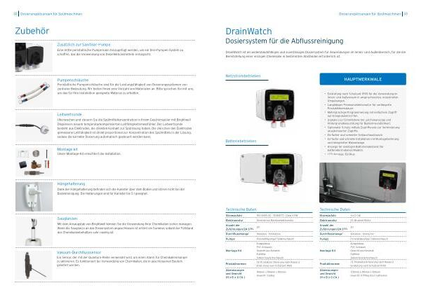 • Dosierung von einer Chemikalie Behälter mit einer Kapazität von 1L oder 2,5L .