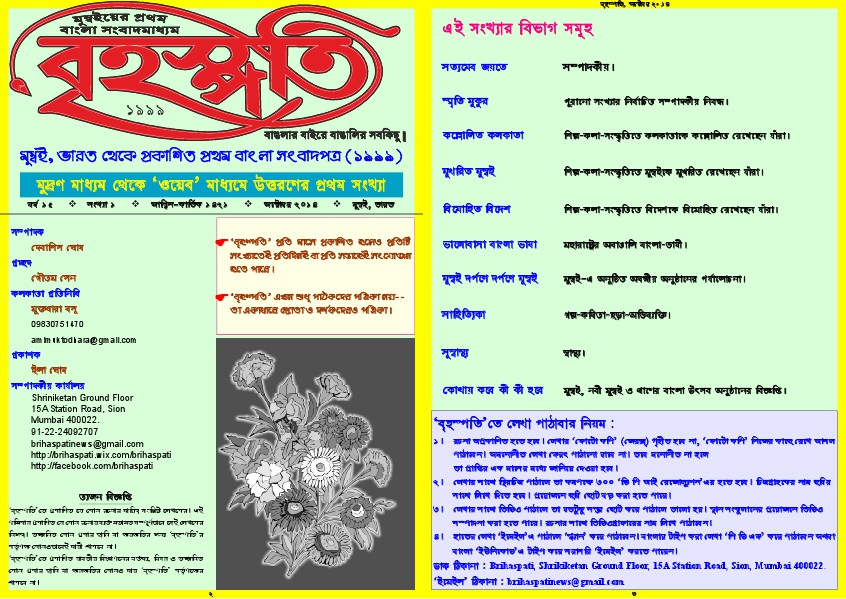 l¡àA¡ [k¡A¡à>à : Brihaspati, Shrikiketan Ground Floor, 15A Station Road, Sion, Mumbai 400022.