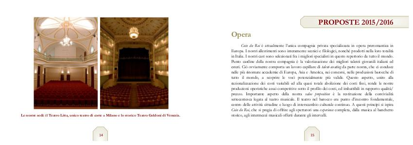 Le nostre sedi: il Teatro Litta, unico teatro di corte a Milano e lo storico Teatro Goldoni di Venezia. 14
