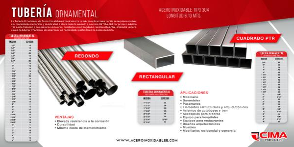 ciales de tubería ornamental de acuerdo a las necesidades particulares de cada operación.