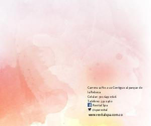 Carrera 12 No 2-22 Contiguo al parque de la Rebeca Celular: 301 649 0616 Teléfono: 331 0360 Revital Spa @ sparevital www. revitalspa. com. co