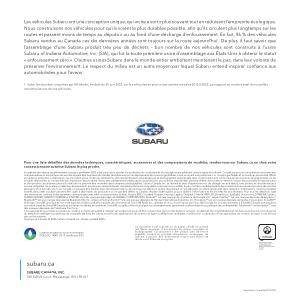 Pour une liste détaillée des données techniques , caractéristiques , accessoires et des comparaisons de modèles , rendez-vous sur Subaru . ca ou chez votre concessionnaire autorisé Subaru le plus proche .