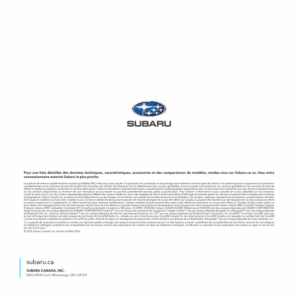 © 2026 Subaru Canada, Inc. Année modèle 2026.