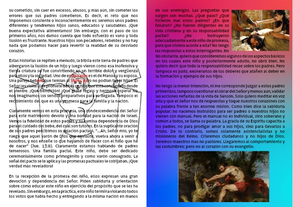 En la recepción de la promesa del niño, ellos expresan una gran devoción y dependencia del Señor. Piden sabiduría y orientación sobre cómo educar este niño en ejercicio del propósito que se les ha revelado. Sin embargo, en la práctica, este niño termina violando todos los votos que había hecho y entregando a la misma nación en manos de sus enemigos. Las preguntas que surgen son muchas. ¿Qué paso? ¿Qué hicieron mal estos padres? ¿En que fallaron? ¿No fueron diligentes en su vida cristiana y en su responsabilidad pactal?