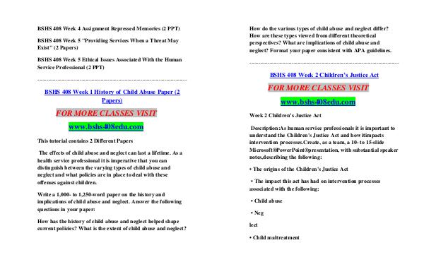 --------------------------------------------------------------------------------- BSHS 408 Week 2 Children’ s Justice Act