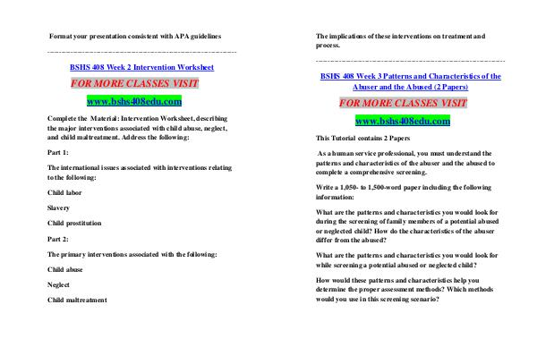 BSHS 408 Week 3 Patterns and Characteristics of the Abuser and the Abused( 2 Papers)