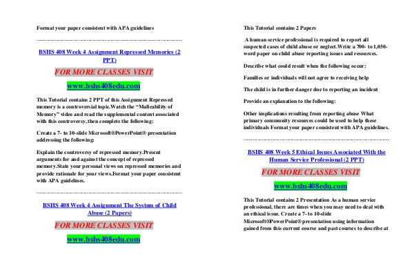 BSHS 408 Week 4 Assignment The System of Child Abuse( 2 Papers)