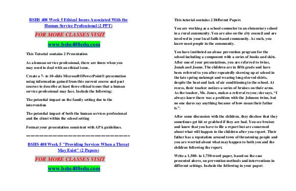 BSHS 408 Week 5 "Providing Services When a Threat